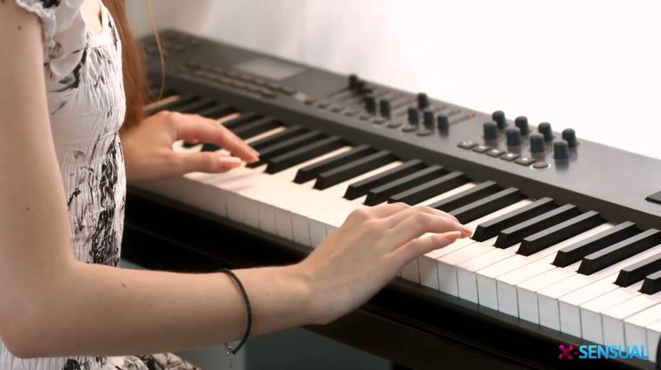 Beautiful piano girl Stefanie is fucked in her tight anal hole