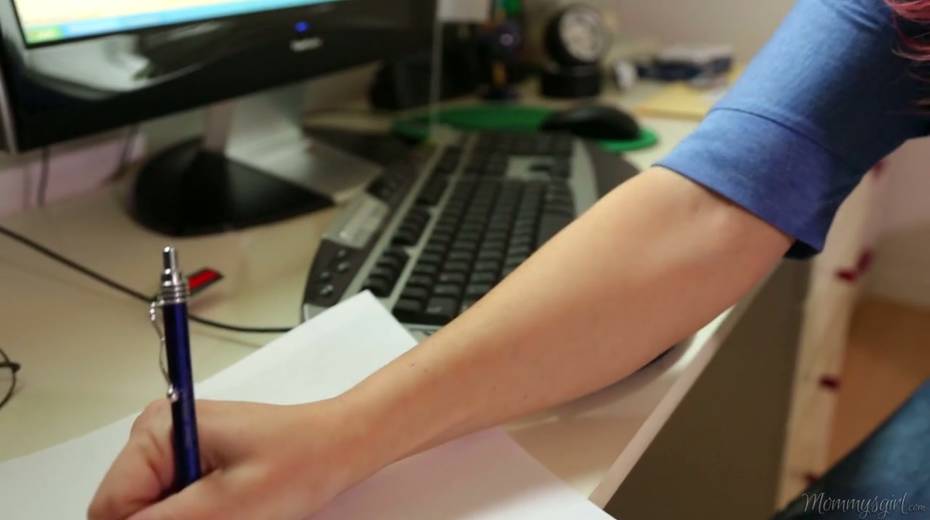 Attractive porn model Melissa Moore gives an interview after hot lesbian scene