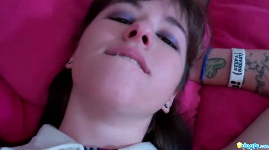 Sex-hungry tattooed brunette Becka is fucking herself