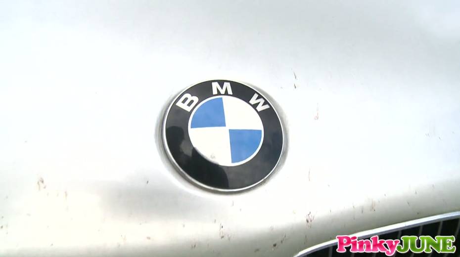 Crazy chick with sex-insane pussy Pinky June is masturbating on the car hood