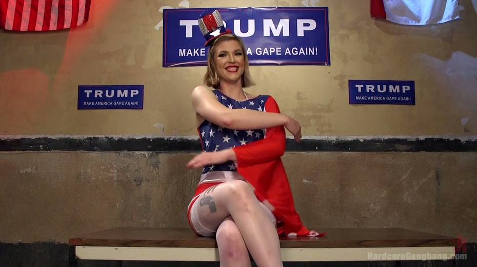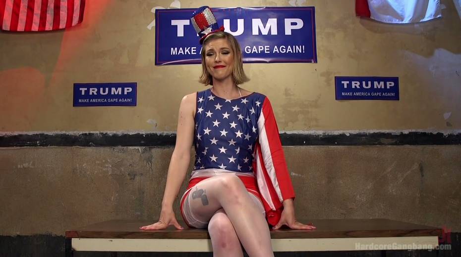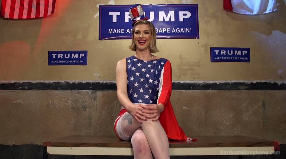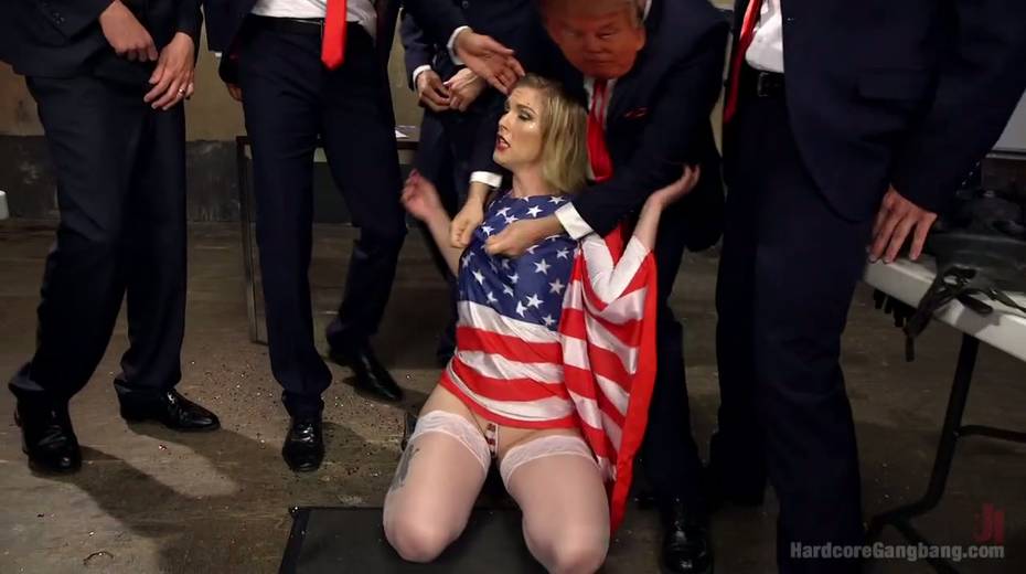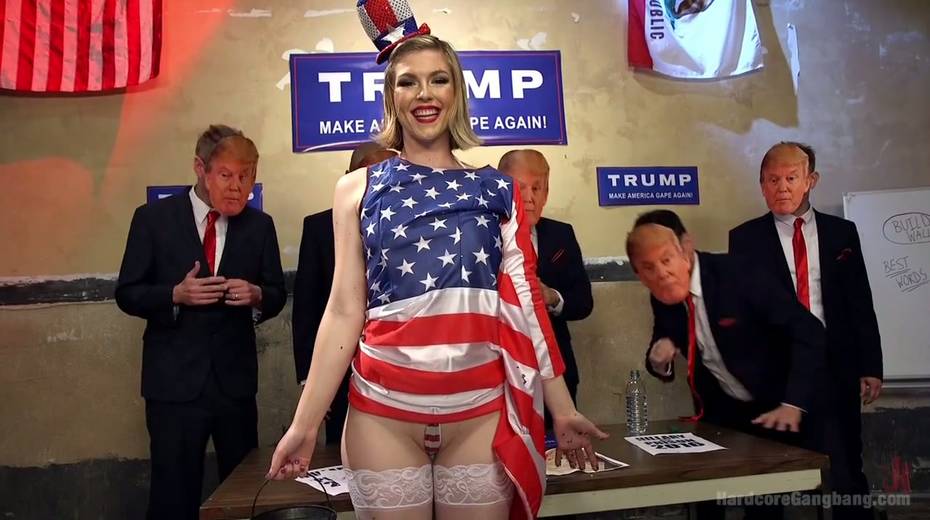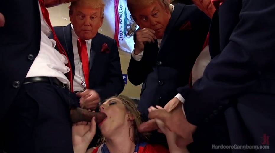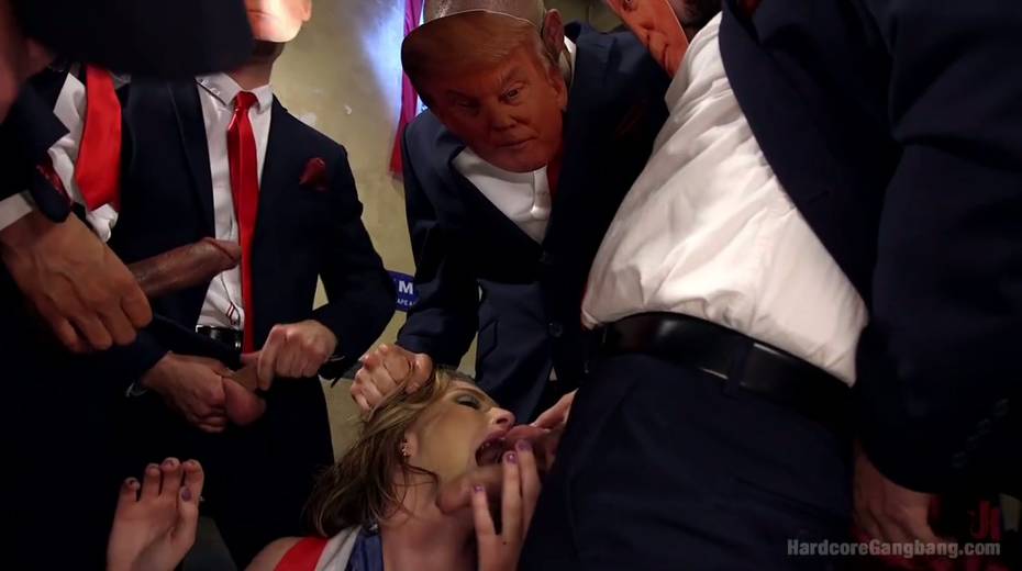 Dudes wearing Trump face masks fucks one pretty hot blonde Ella Nova