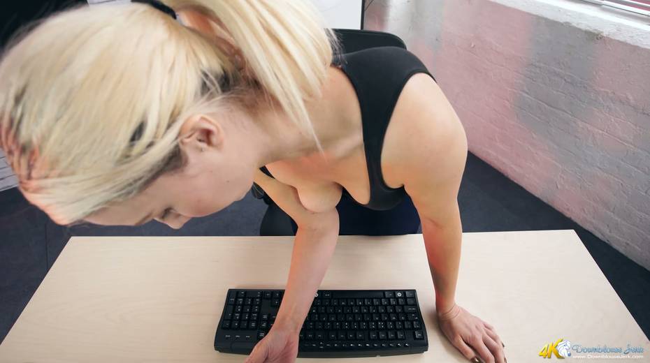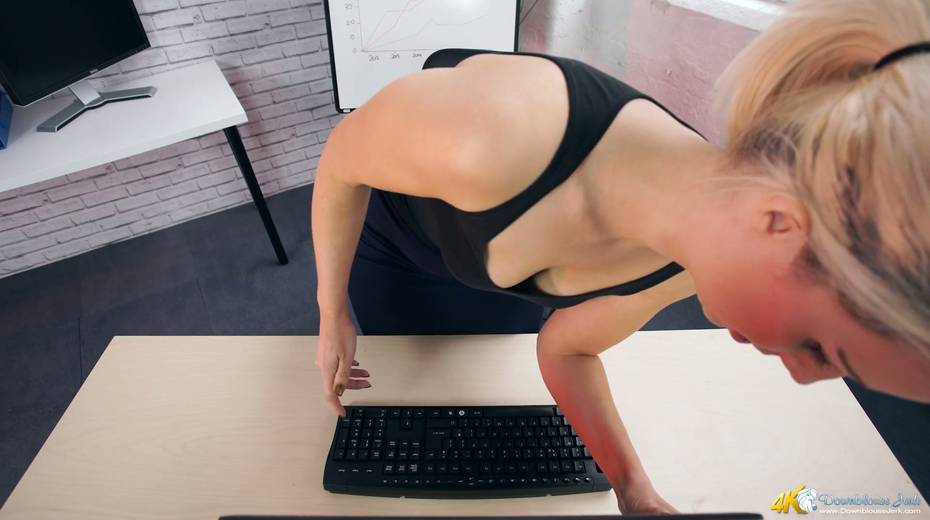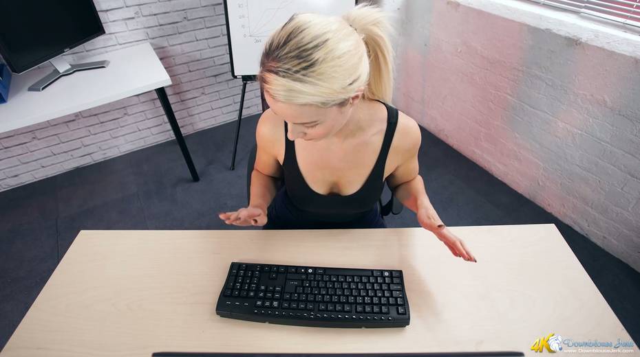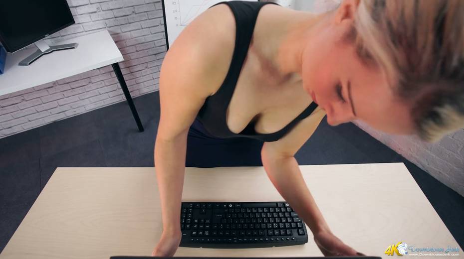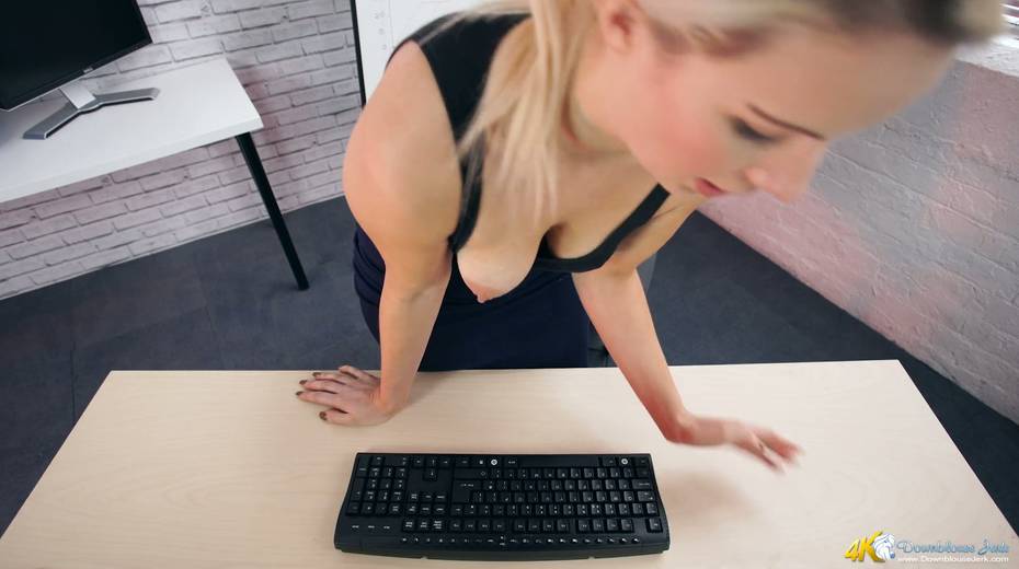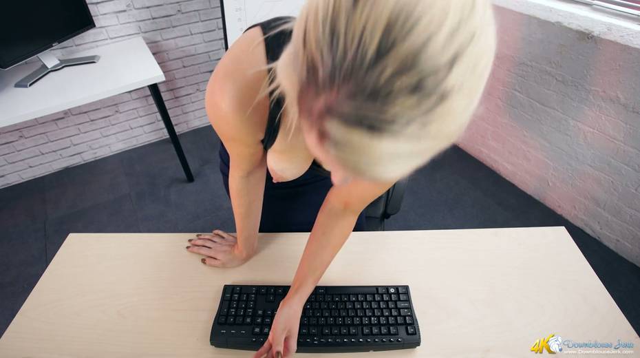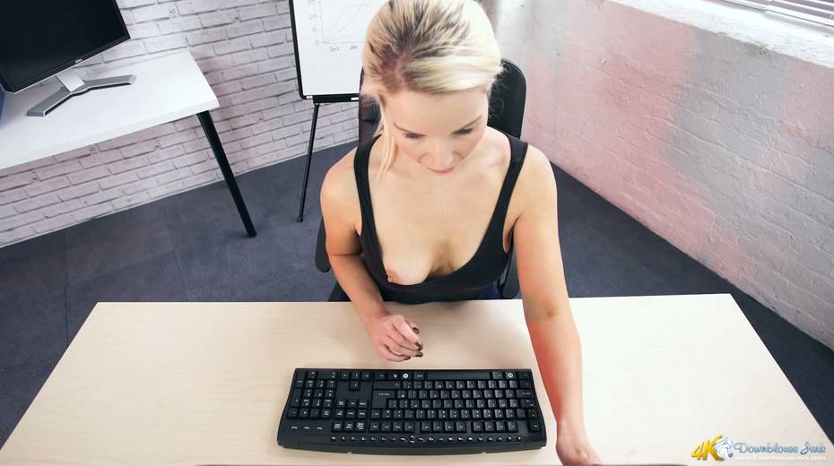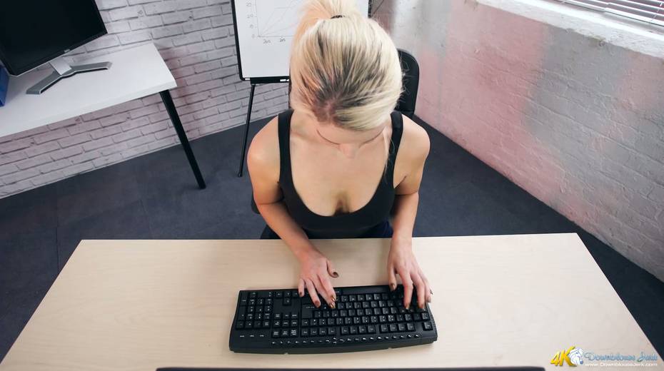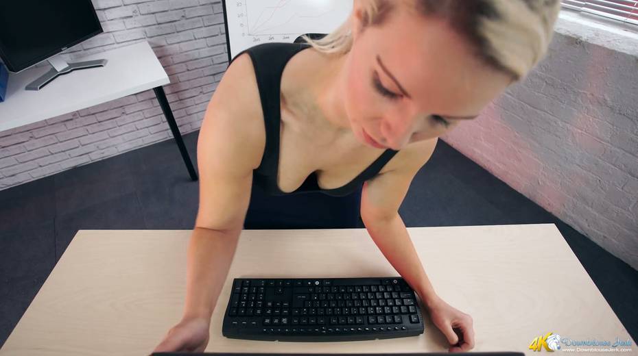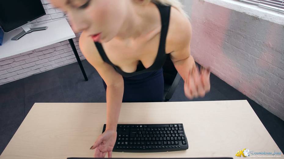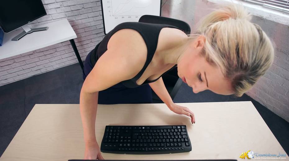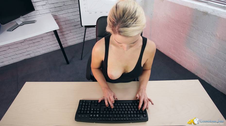 Filthy secretary Sky shows off her super juicy full natural boobs
