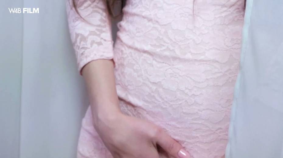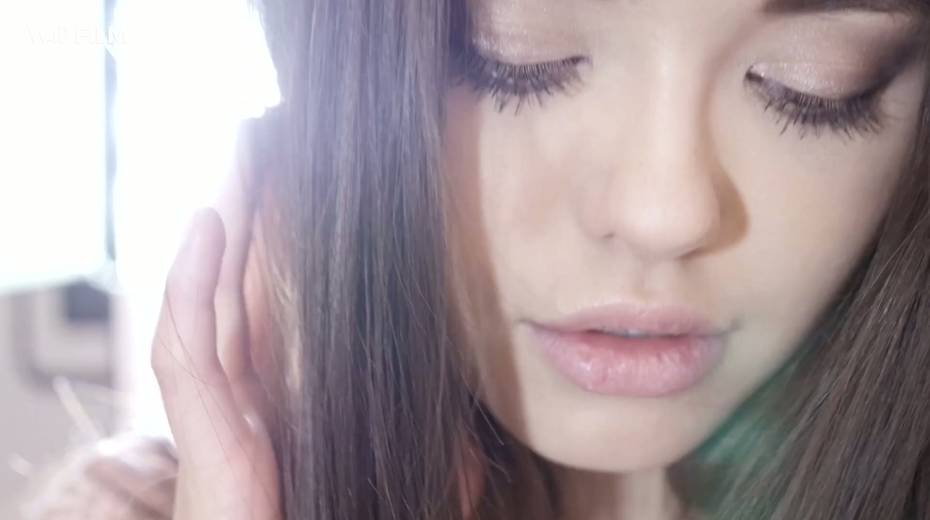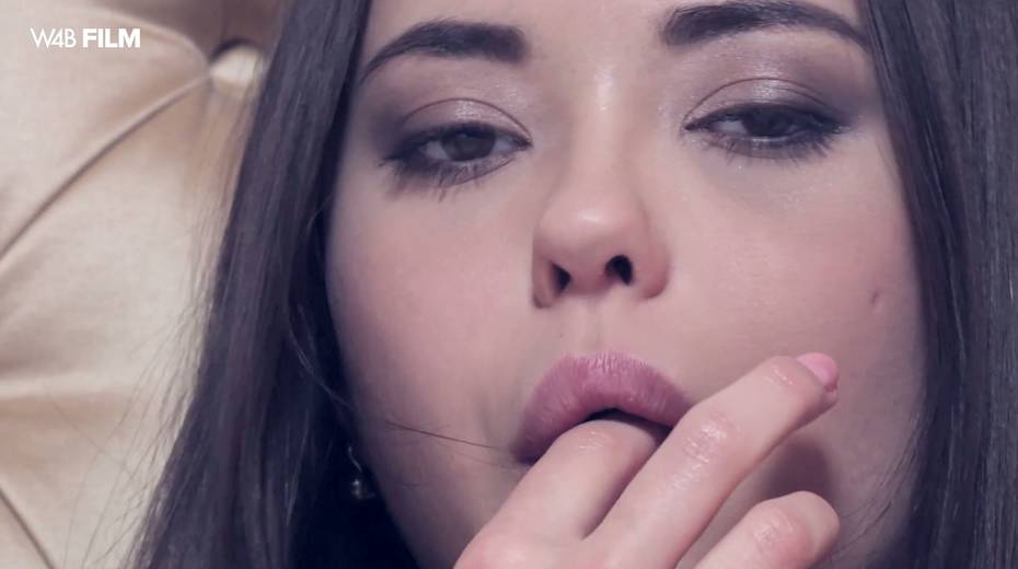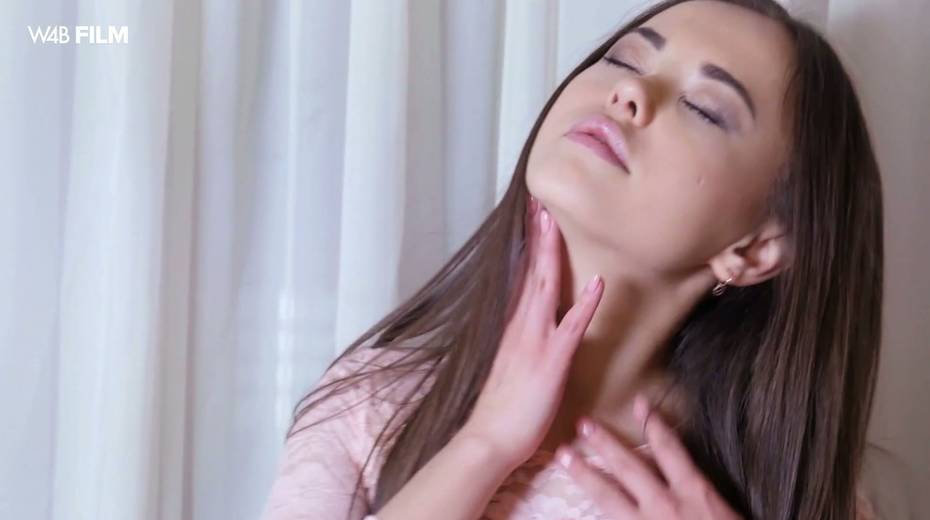 Sweet looking babe Li Moon is fucking herself early in the morning