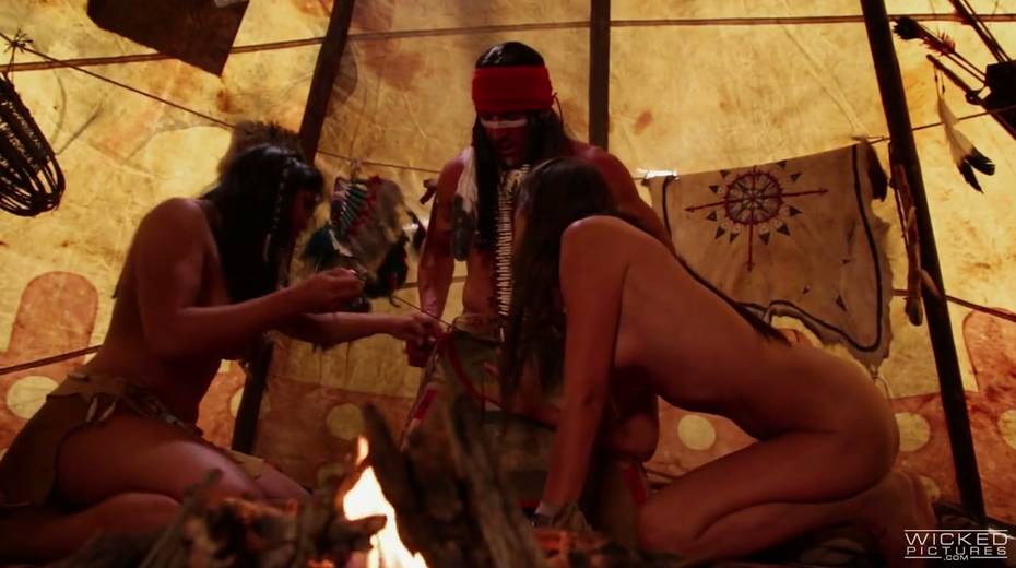 Two sex-hungry tribal babes Amber Rayne and Mia Li are fucked by hot blooded chief