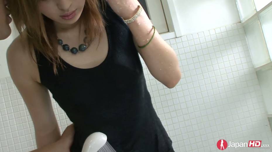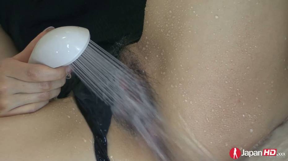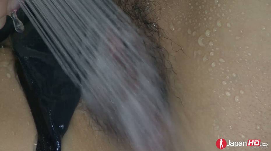 Japanese teen Yuu Mizuki is stimulating hairy pussy with a shower head