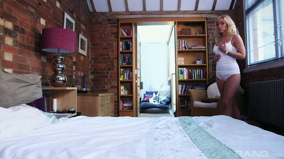 Curvy blonde Karlie Simon is having passionate sex with her lover