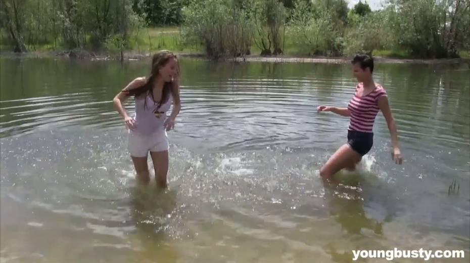 Two beautiful teens can't stop pleasing each others pussies outdoor