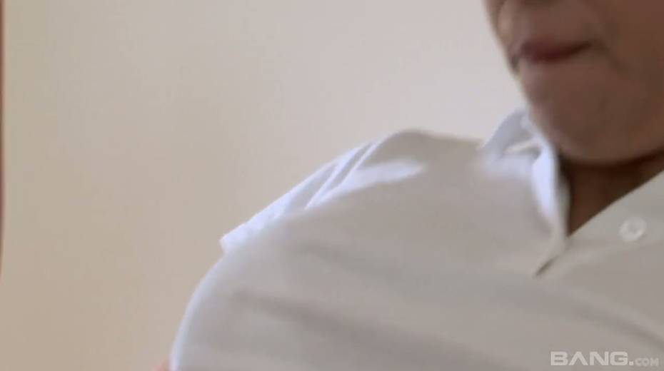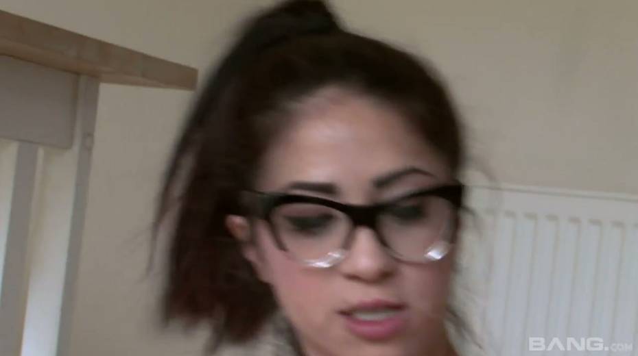 Nerdy brunette Julia de Lucia gets her muff fucked and takes cumshots on her glasses