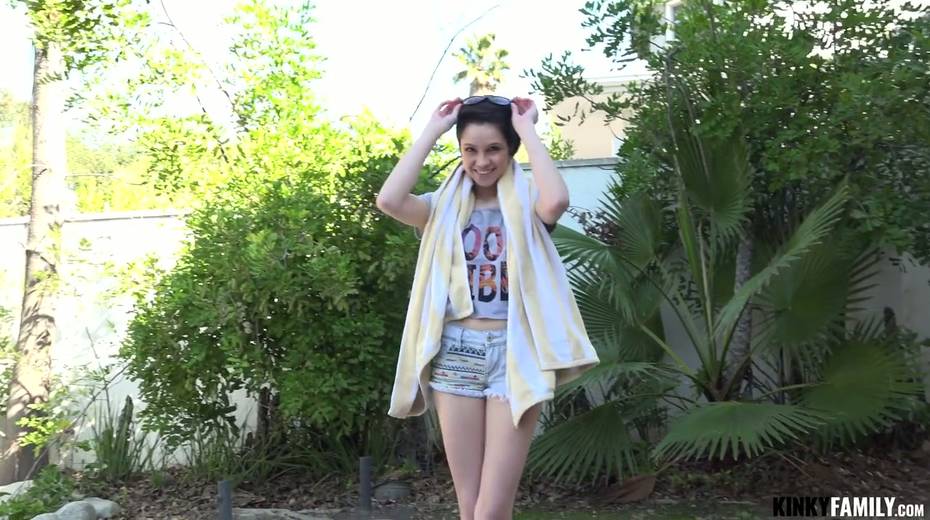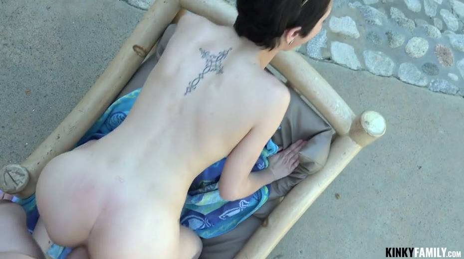 Slender brunette with short hair Cadey Mercury is riding a hard cock of her kinky stepbrother