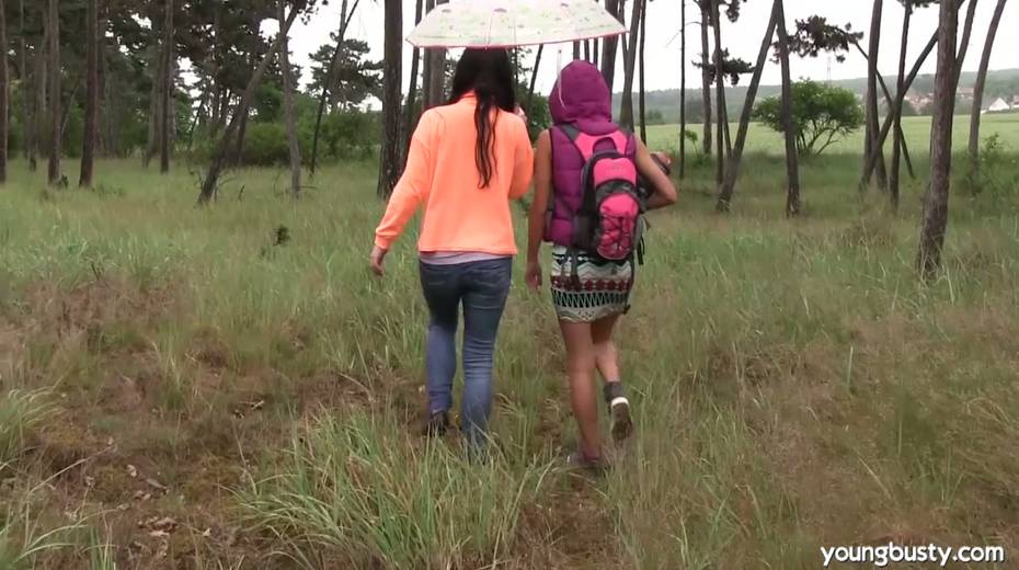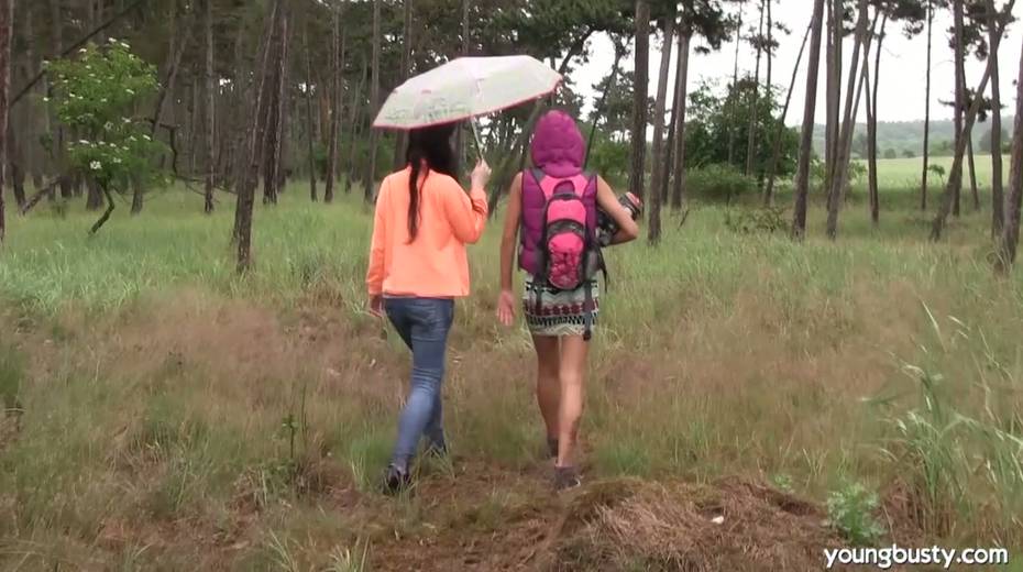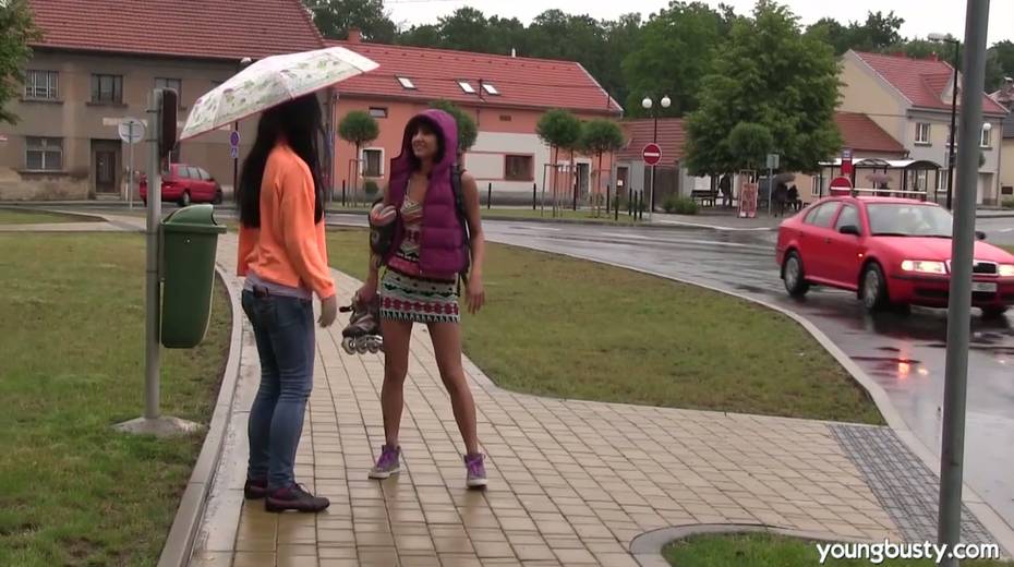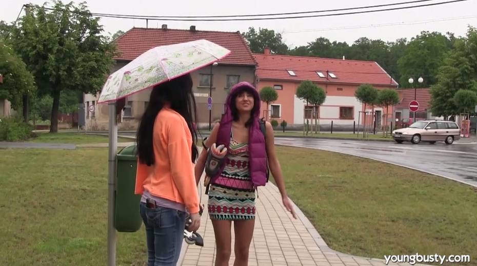 Sex-appeal hottie Daphne J fucks girlfriend's pussy under the rain