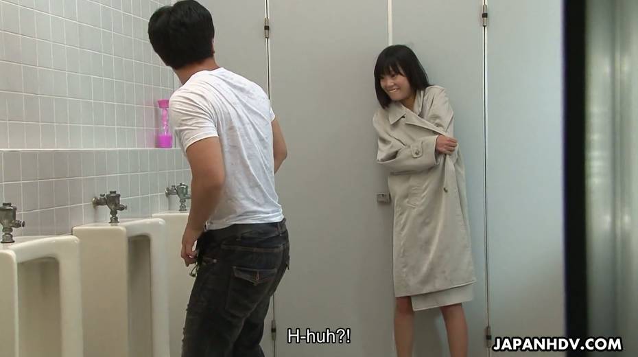 Crazy Asian chick Uta Kohaku pisses on dick of one stranger dude in a public toilet