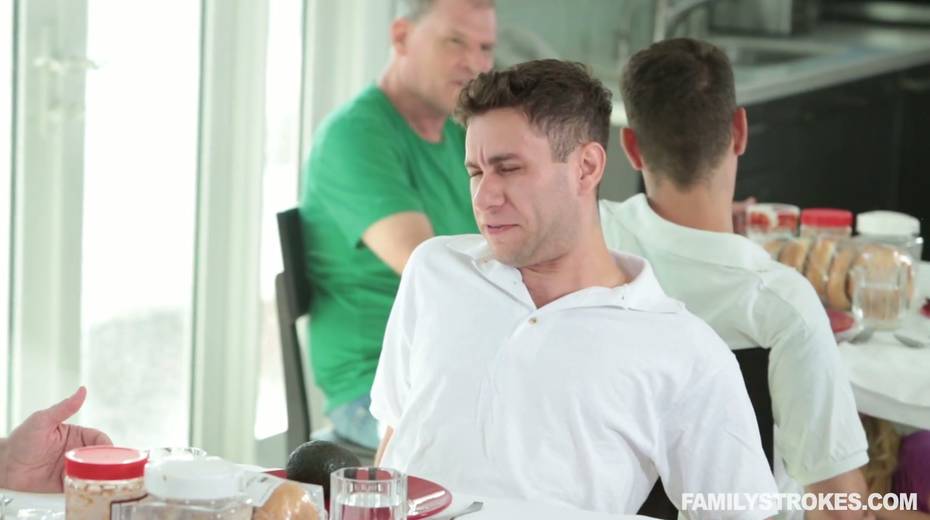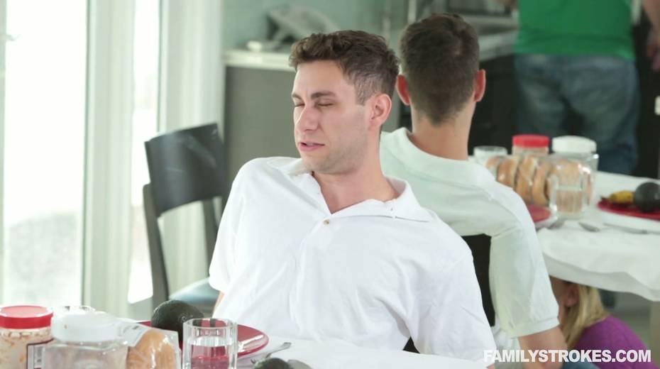 Whorish mom Linn Karter is sucking stepson's dick under the table