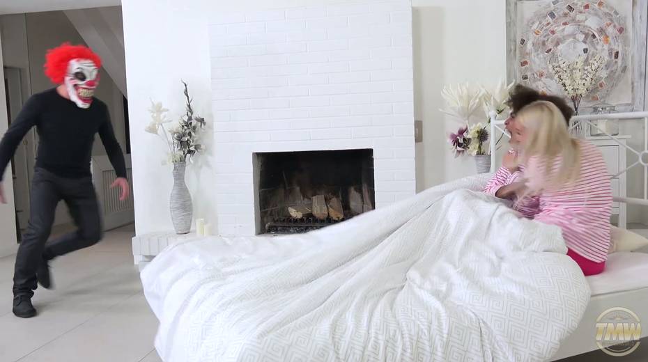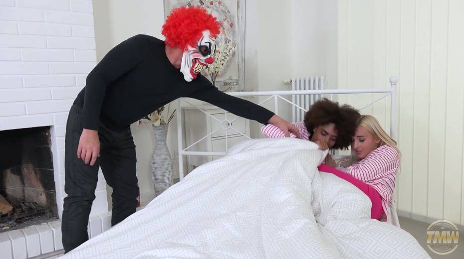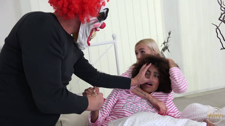Kinky clown fucks Luna Corazon and her beautiful girlfriend