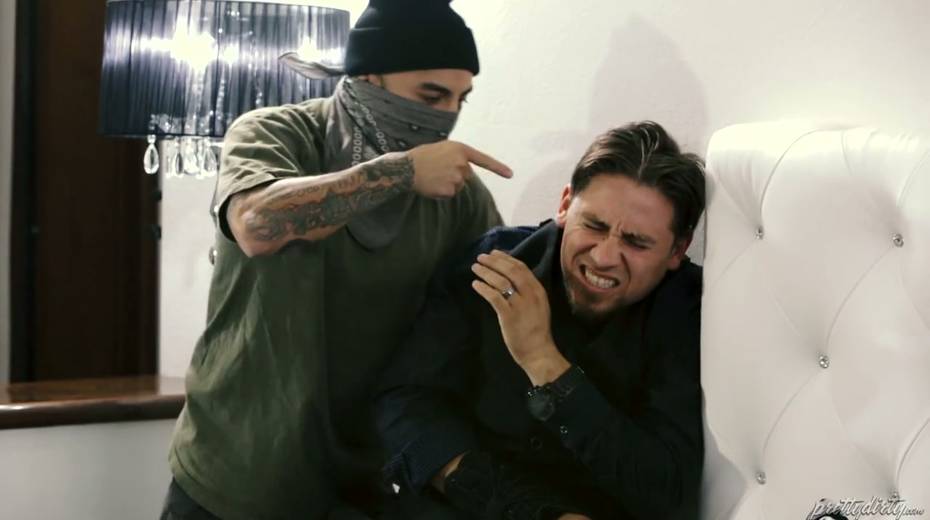 Two dudes in masks fuck Aaliyah Love in the presence of her husband