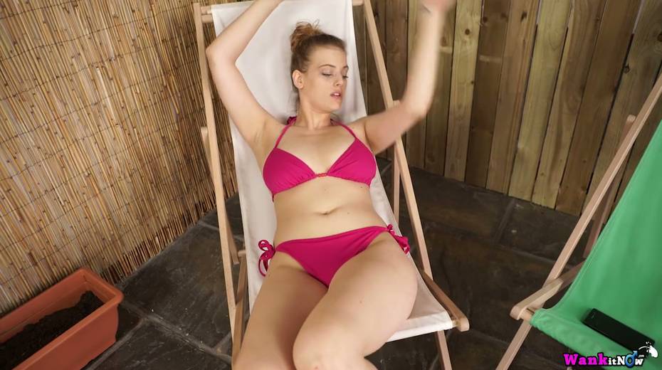 Ample breasted babe Lottii Rose is pleasing herself on the beach chair