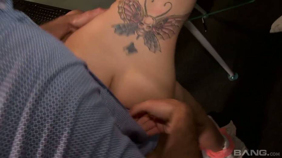 Sassy chick having butterfly tram stamp Jess West is fucked by one hot tempered guy