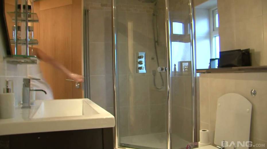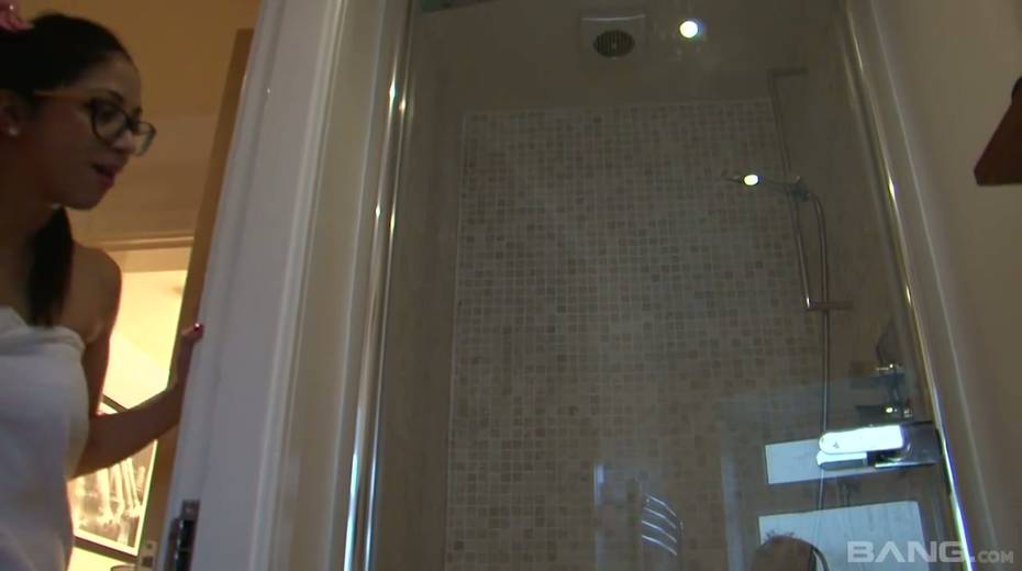 Four eyed chick Julia de Lucia takes a shower before steamy sex