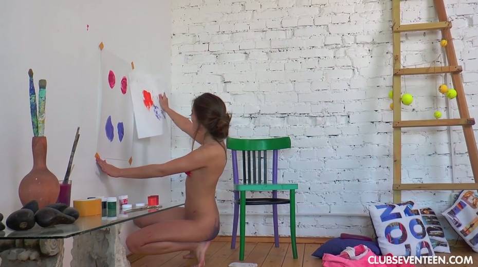 Sweetie Evelina Darling paints her body and masturbates juicy pussy