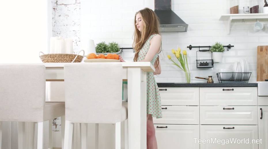 Charming teen Adel Bye is making love with her BF on the kitchen table