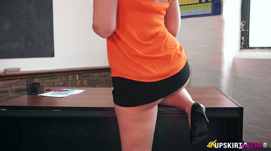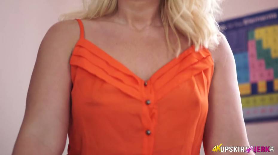 Blond teacher Nikki Lee spreads legs and shows off her plump pussy