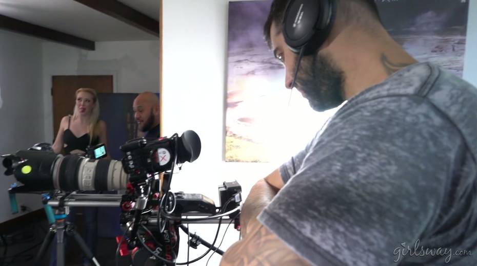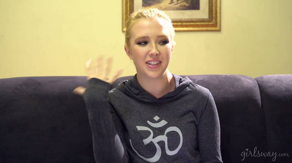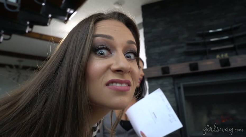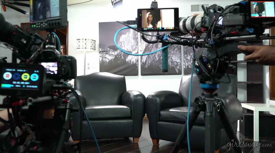 Sexy porn model Adriana Chechik gives an interview after girl on girl scene