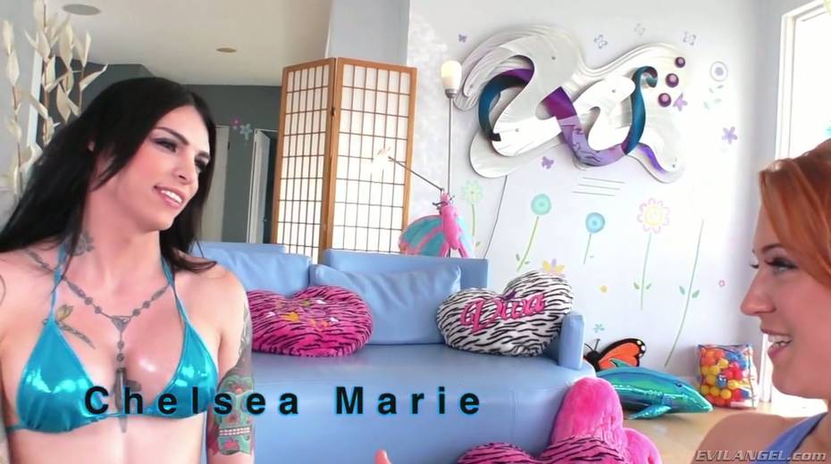 Kinky T-girl Cheyenne Jewel is making love with one bootyful red haired chick