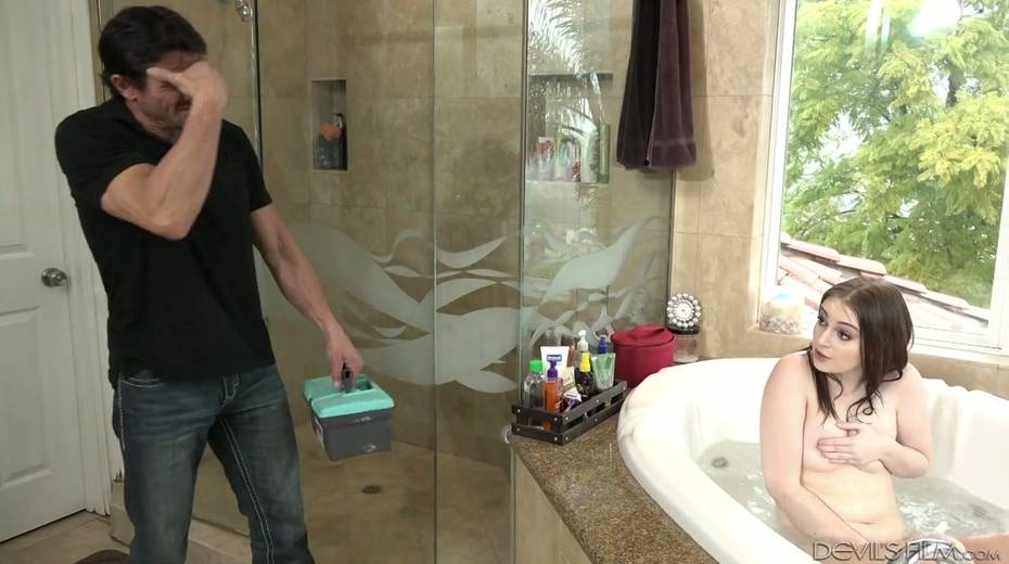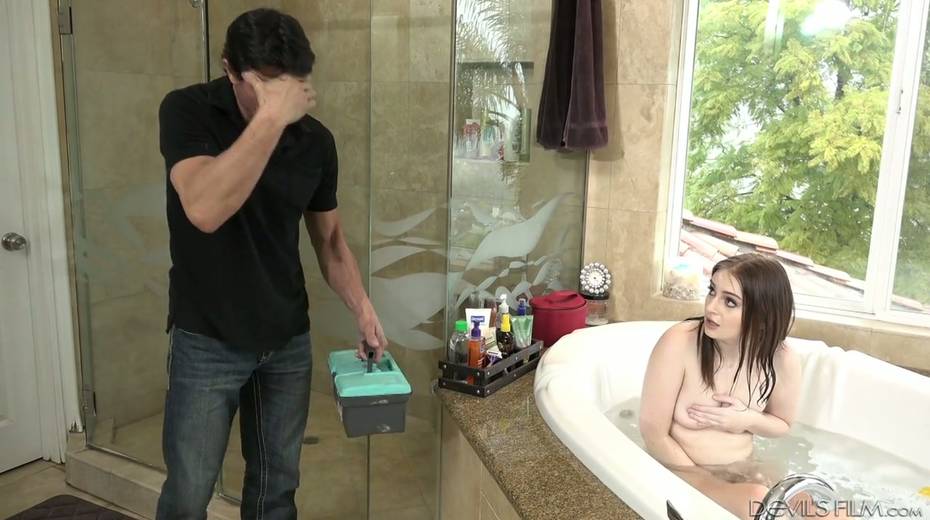 Libidinous babe with hairy muff Maya Kendrick gets intimate with plumber
