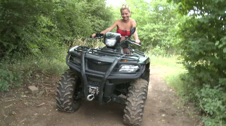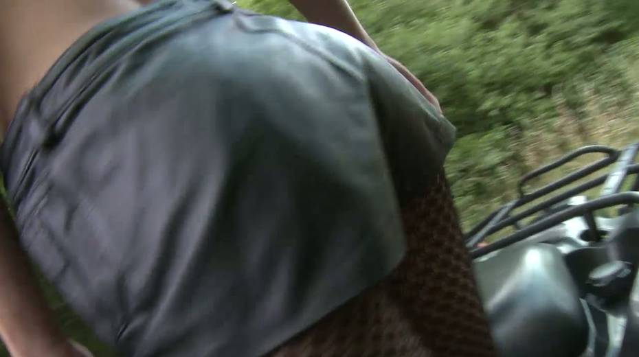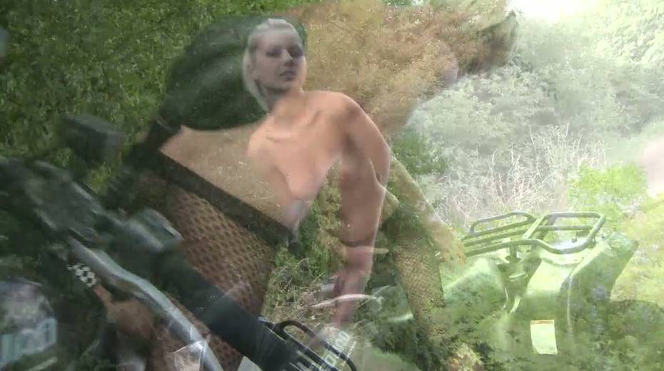 Sassy chick Pinky June finger fucks her pussy outdoor