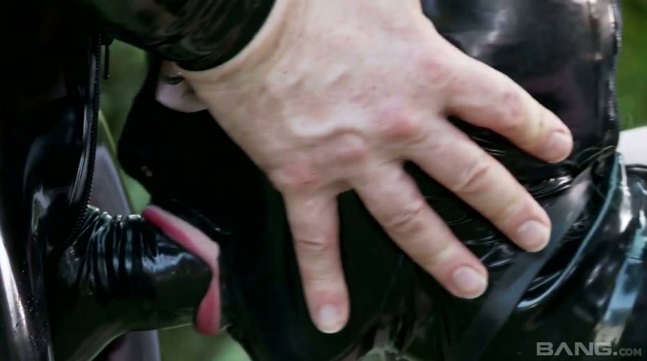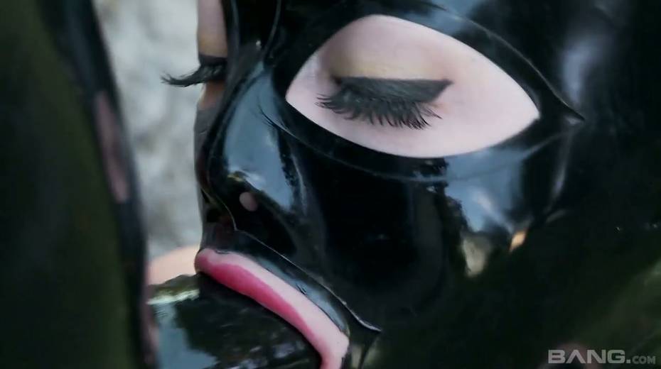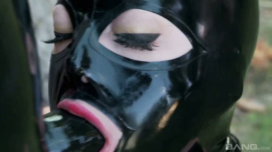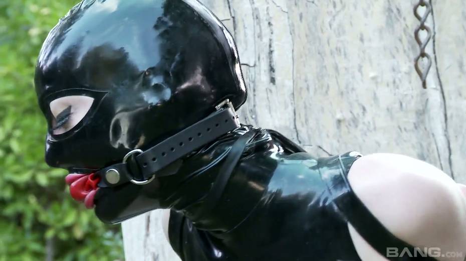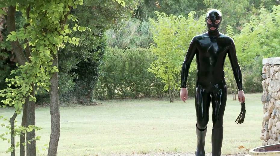 Mater in latex outfit face fucks sex-appeal slave Lucy Latex in the garden