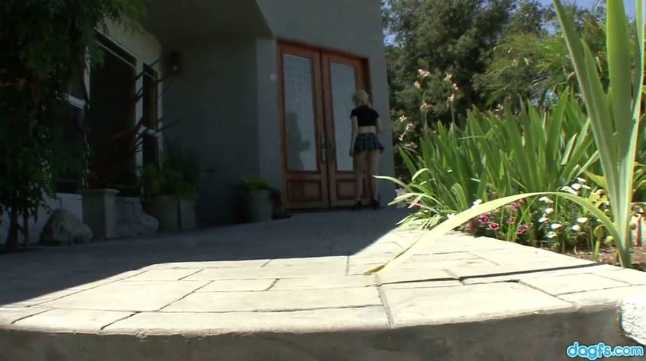 Chick in super short skirt Ranie Mae gets intimate with her neighbor