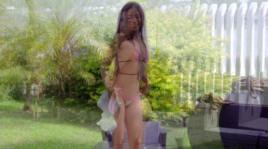 Stunning teen model Karin Torres is playing with her charming pussy in the garden