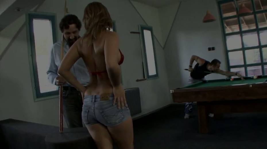 Trashy looking whore Linda Ray gets double penetrated on the billiard table