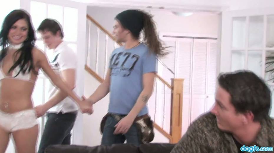 Dirty whore Mandy More is attacked by three sex-hungry dudes
