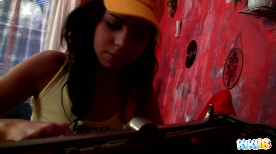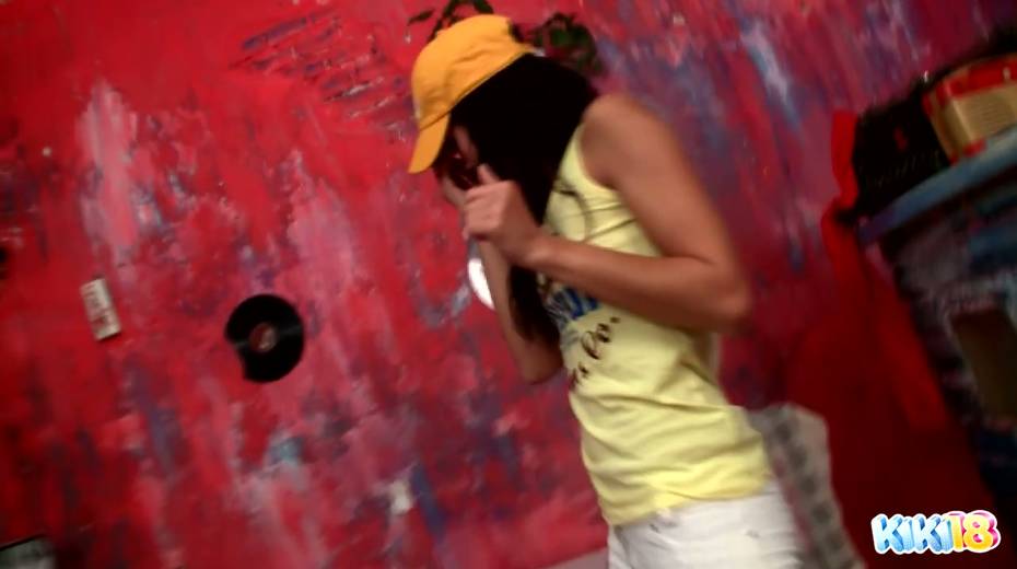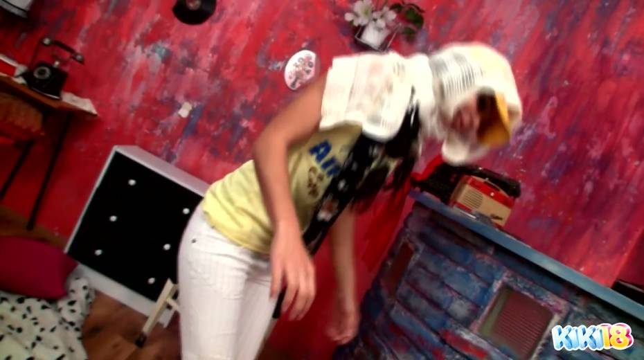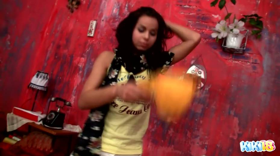 Perverted teen Kiki dildo fucks her yummy pussy