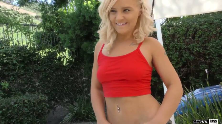 Cute nextdoor blonde Bella Jane gives her head and gets her slit fucked