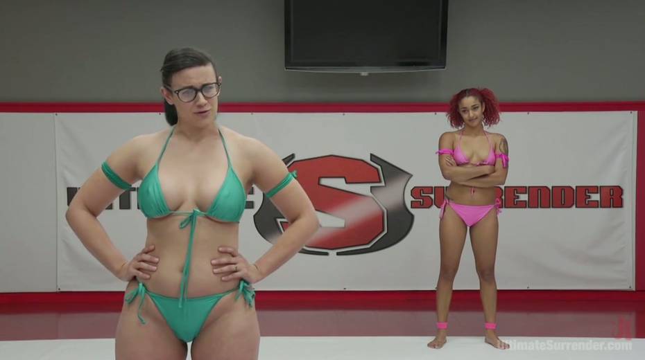 Four eyed brunette Penny Barber is fucked after catfight scene