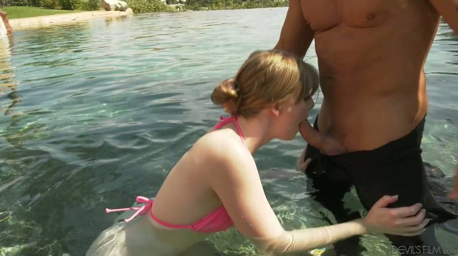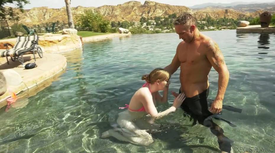 Captivating red haired babe Dolly Leigh sucks dick and gets fucked