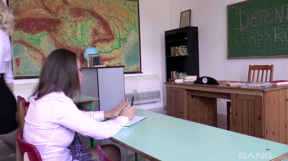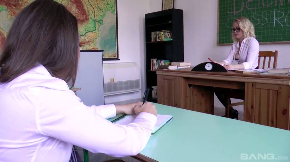 One dude fucks naughty teacher Ash Hollywood and one sweet college chick