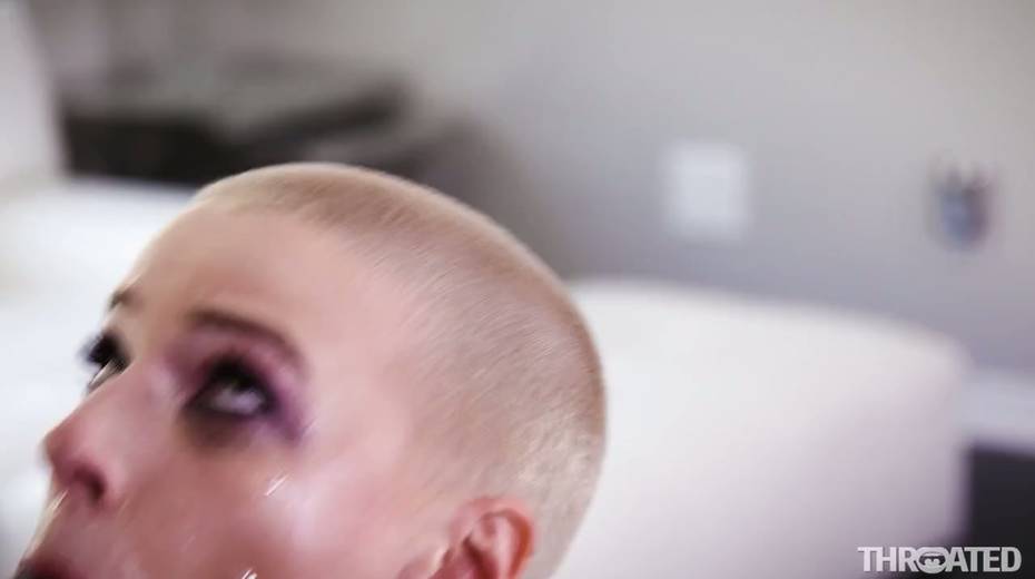 Bald headed slut Riley Nixon gives an unforgettable sloppy blowjob to one black dude