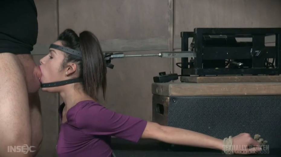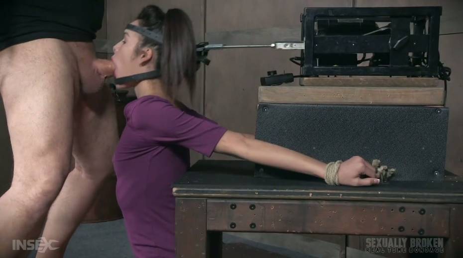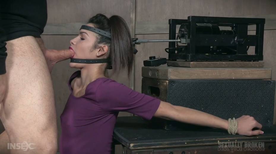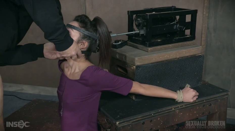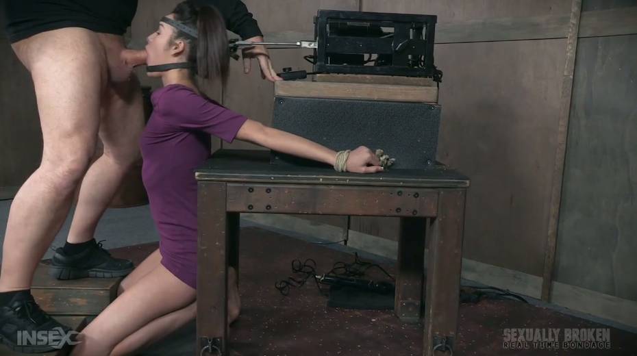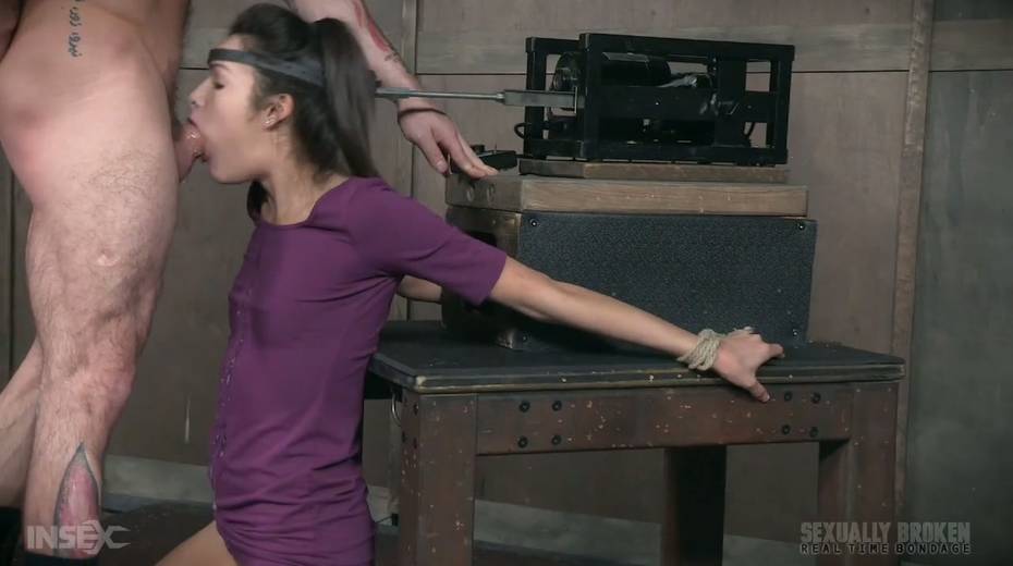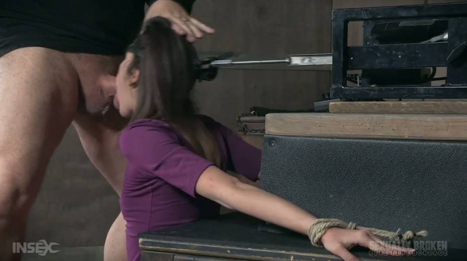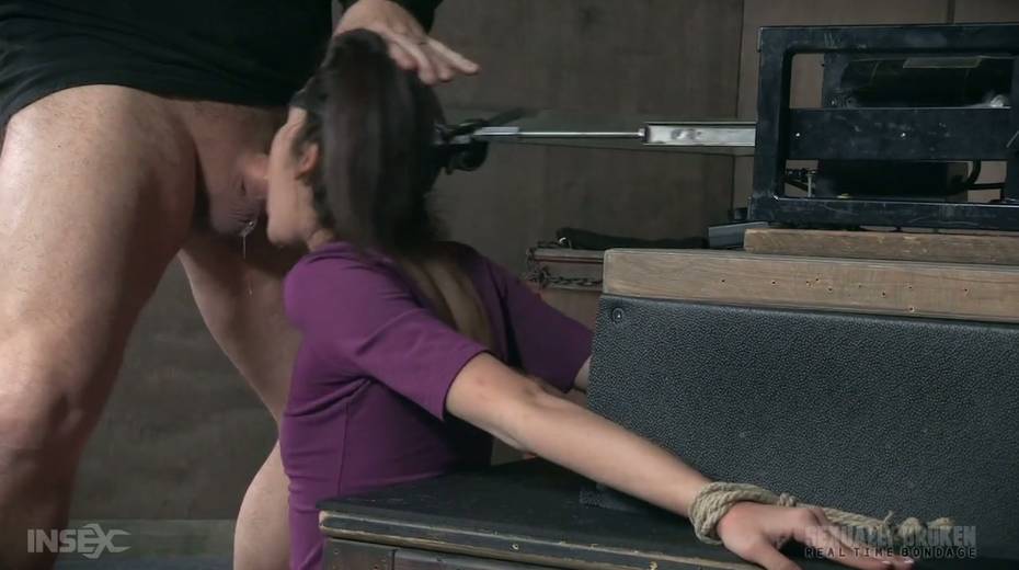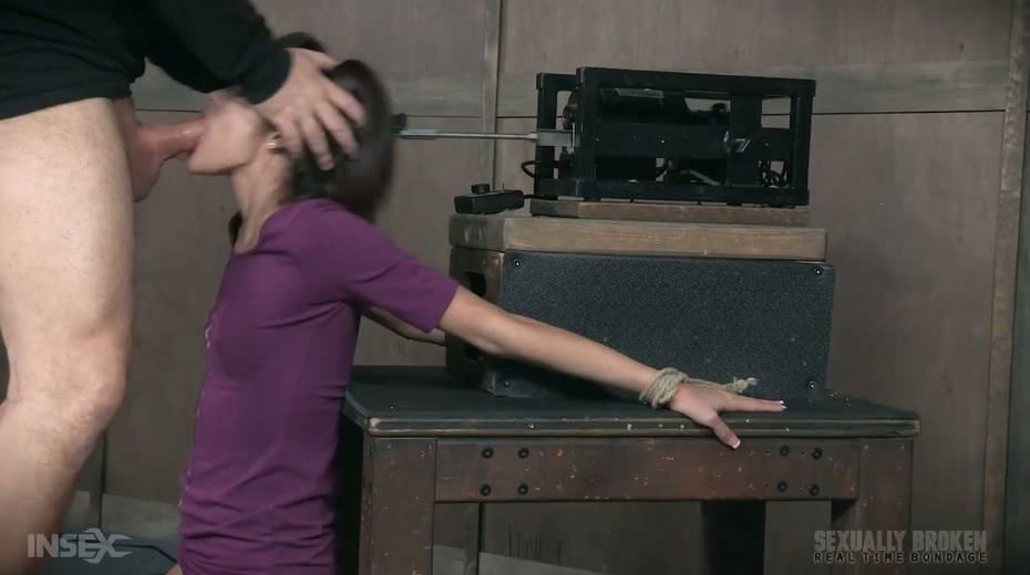 Kinky dude fucks face of tied up to the table whore Eden Sin