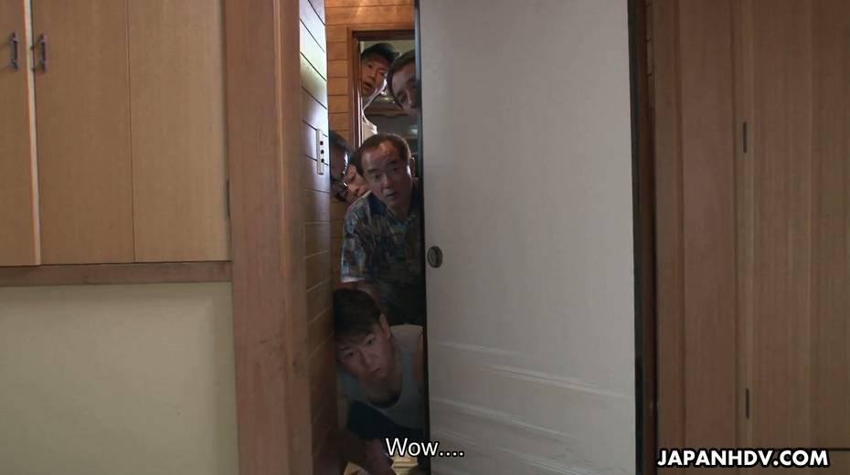 Several perverted dudes are spying on masturbating Japanese chick Juri Kitahara