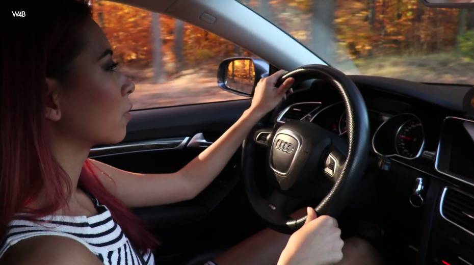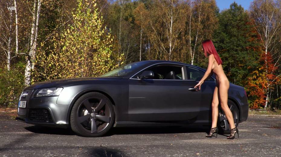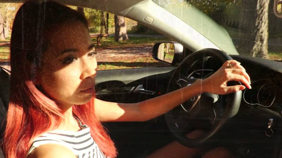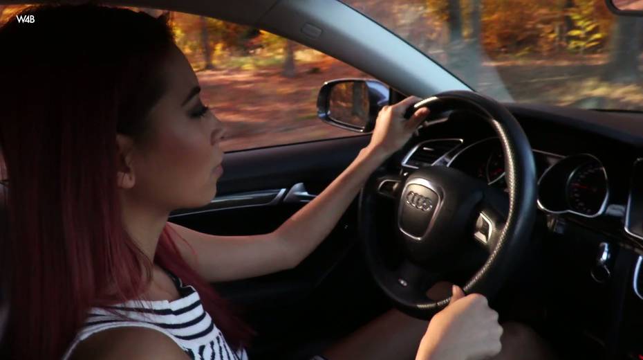 Sex-hungry hoochie Paula Shy is masturbating her muff right on the road