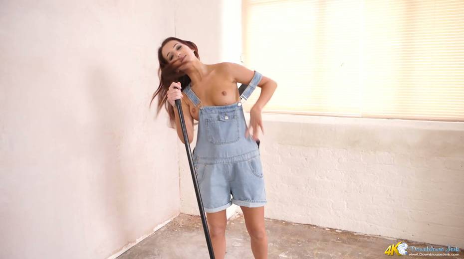 Flirty teen Layla looks fucking hot in overalls worn on bare skin