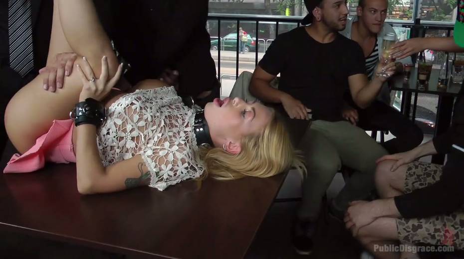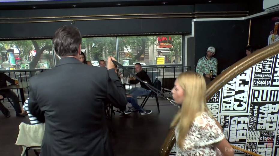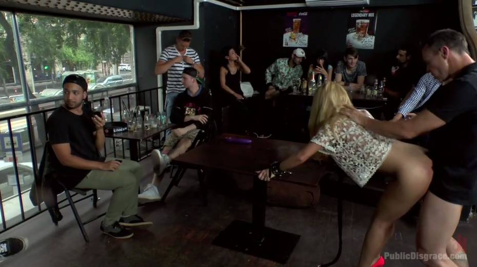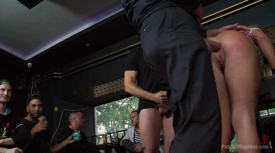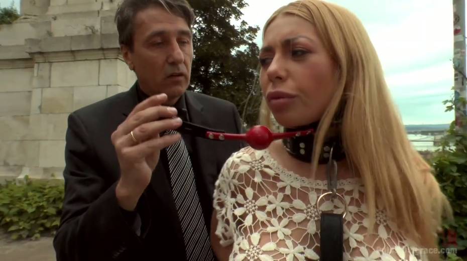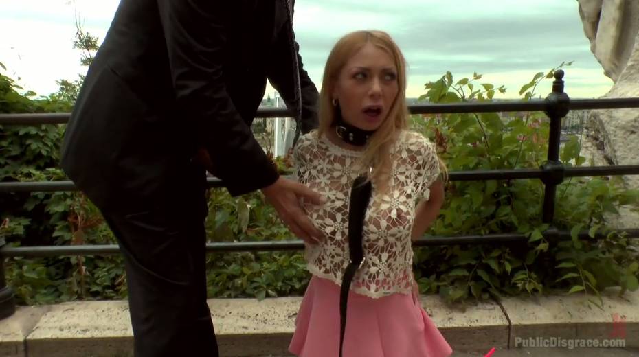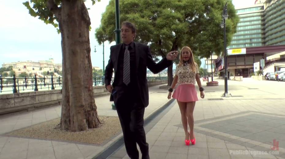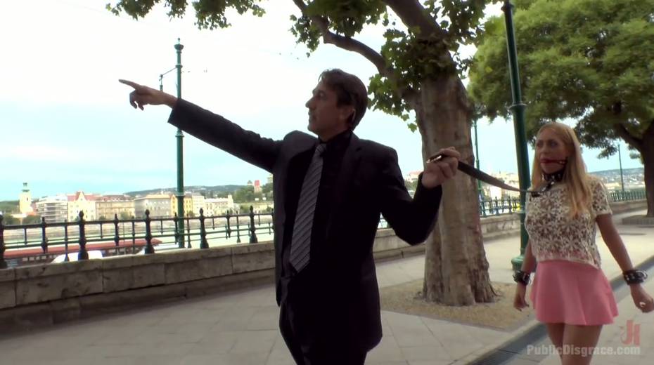 Leggy babe in short skirt Isabella Clark is punished and fucked in public