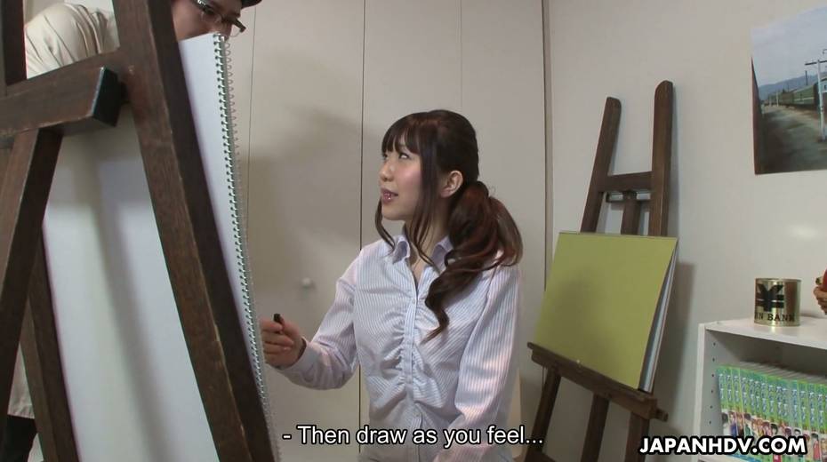 Delicious Japanese artist Sakura Saya is fucked by hot blooded dudes