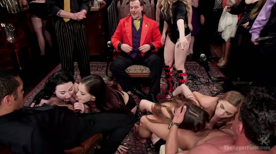 Several nasty chicks and Aiden Starr are fucked hard in public