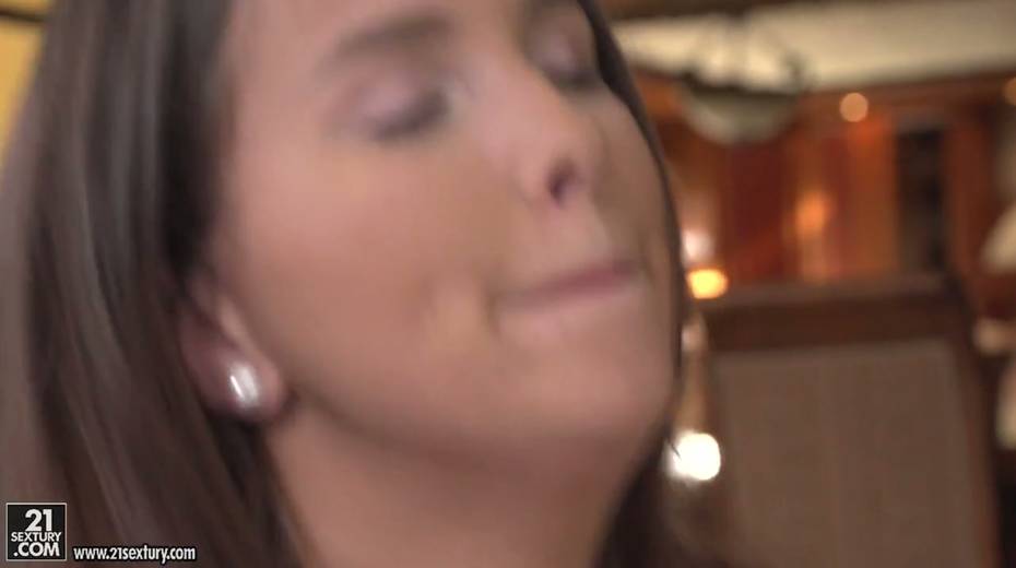Charming young brunette Olivia Nice gives a titjob and gets her slit fucked