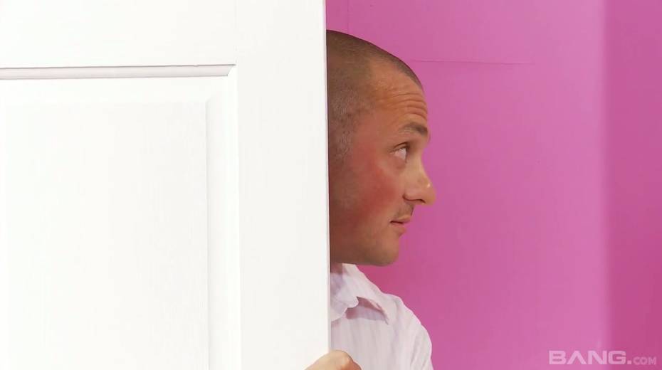 Tasty looking blondie with big boobies Karlie Simon is fucked by one bald headed dude