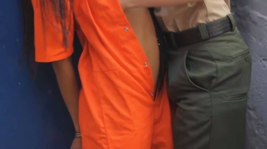 Red haired dyke in police uniform fucks one ebony arrested chick