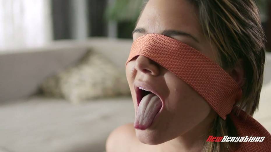 Blind folded babe Alix Lovell gets her slit rammed and gives a blowjob